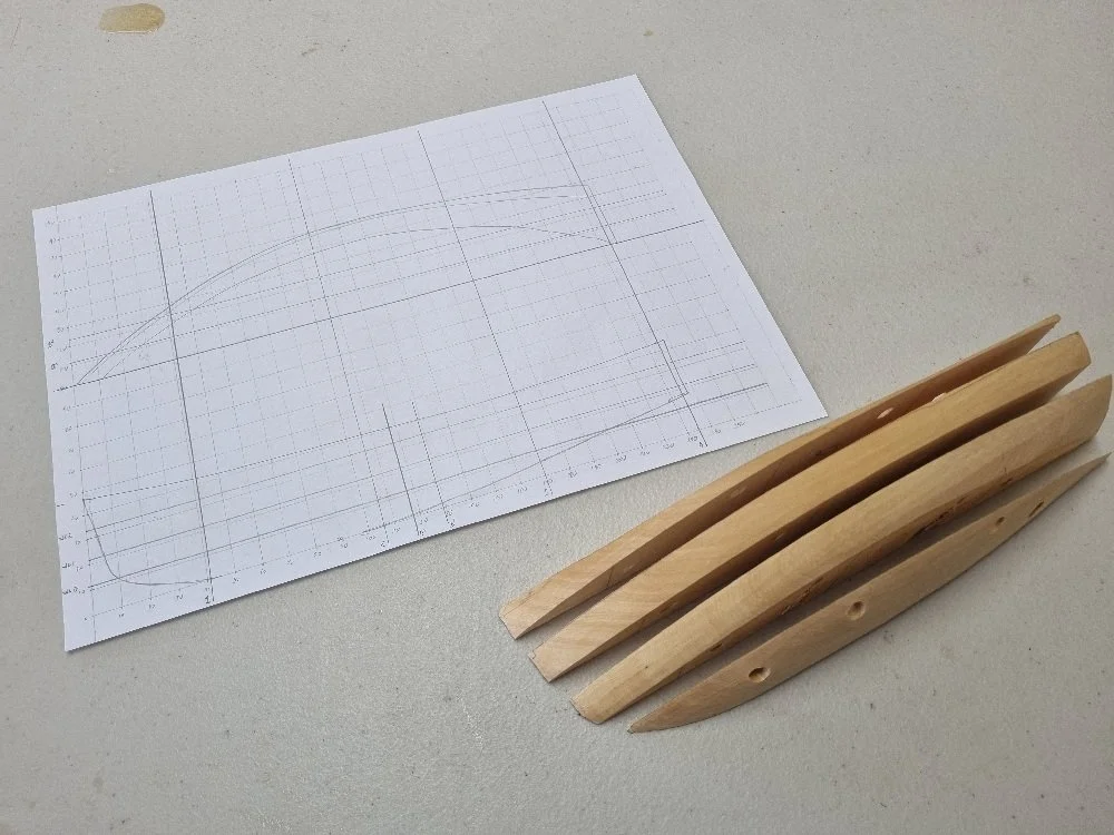 The next step is the lofting. Traditionally done in large, open upper floors called the loft, we will instead take up the upper workshop for a couple of days and make the all important full size drawing based on one of the half models we just created.